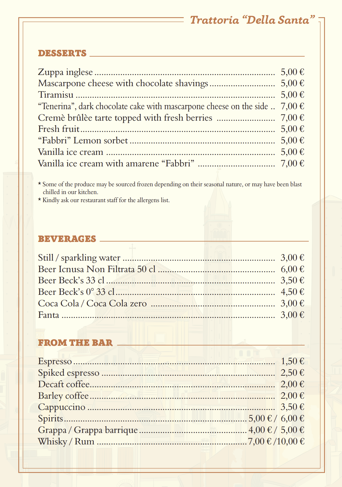 Trattoria della Santa offers a wide range of typical Bolognese specialities. The menu is expertly designed to satisfy and surprise all palates.